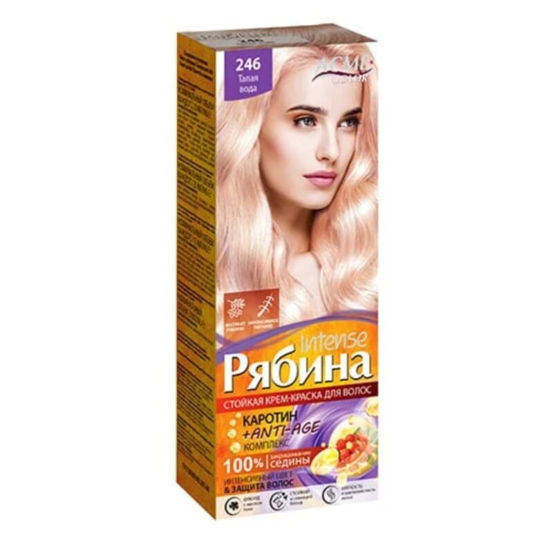 Nr. 246 – Atitirpęs ledas. Intensyvi ilgai išliekanti spalva. Žilų plaukų dažymas. Maitinimas + atkūrimas. Prabangus plaukų blizgesys. 1 žingsnis: Intensyvi plaukų priežiūra dažymo metu. Rebina Intense – tai plaukų dažai, kurių sudėtyje yra pigmento karotino (šermukšnių ekstraktas – tai natūralus karotino šaltinis). Dėl nedidelių spalvos molekulių dažikliai įsiskverbia giliai į plaukų žievę, tvirtai joje prisitvirtina, todėl yra sunkiau išplaunami, o plaukams suteikia žvilgančio, aksominio blizgesio. Puikiai nudažo žilus plaukus. Fluidas, kurio sudėtyje yra linų sėmenų aliejaus, maitina ir saugo plaukus šviesinimo metu, neleidžia jiems trupėti ir skilinėti. 2 žingsnis: Intensyvus maitinimas po plaukų šviesinimo. Mažo rūgštingumo (žemo pH) puoselėjanti kaukė padeda stabilizuoti plaukų spalvą po šviesinimo, „užsandarina“ žvynelius, glotnina ir drėkina plaukus. Kaukės sudėtyje esantis avižų aliejus maitina ir atkuria plaukus. Nudažyti plaukai taps blizgantys ir spindintys! Pakuotės pakanka: trumpiems plaukams – 2 dažymams, vidutinio ilgio plaukams – 1 dažymui.